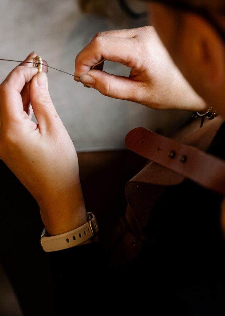 Ik ging vrij blanco naar Dian; het enige dat ik wist was dat ik een ring met een donkergrijze parel wilde. We raakten aan de praat en gedurende het gesprek vormde Dian zich een beeld van mij en mijn verhaal en wist dat te vertalen naar een prachtige ring waar ik nog elke dag blij mee ben!