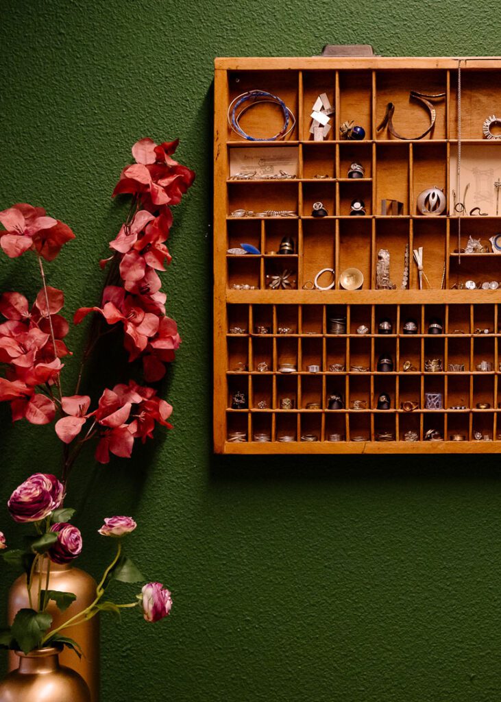 Naast sieraden van oude sieraden maakt ze ook prachtige nieuwe exemplaren. Zo heb ik mezelf een betoverende ring voor mijn 40ste gegeven. Samen ontworpen. Dian laat je zelf praten en bedenken en stuurt daar heel fijn in en komt met goede, creatieve ideeën. Uiteindelijk ben je dubbeltrots op het resultaat omdat je een beetje mee hebt mogen creëren. Maar de echte vakvrouw is Dian.